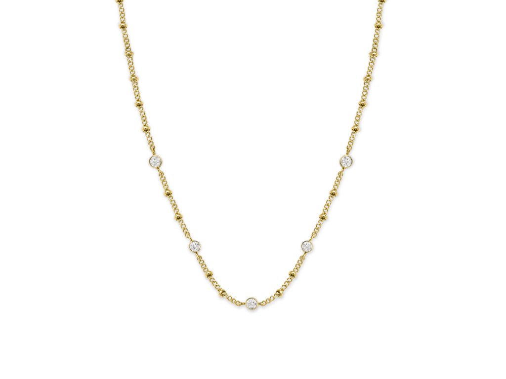 Náhrdelník Rosefield, nerezová oceľ, kryštály, pozlátené, nastaviteľná dĺžka 35 - 39 cm.