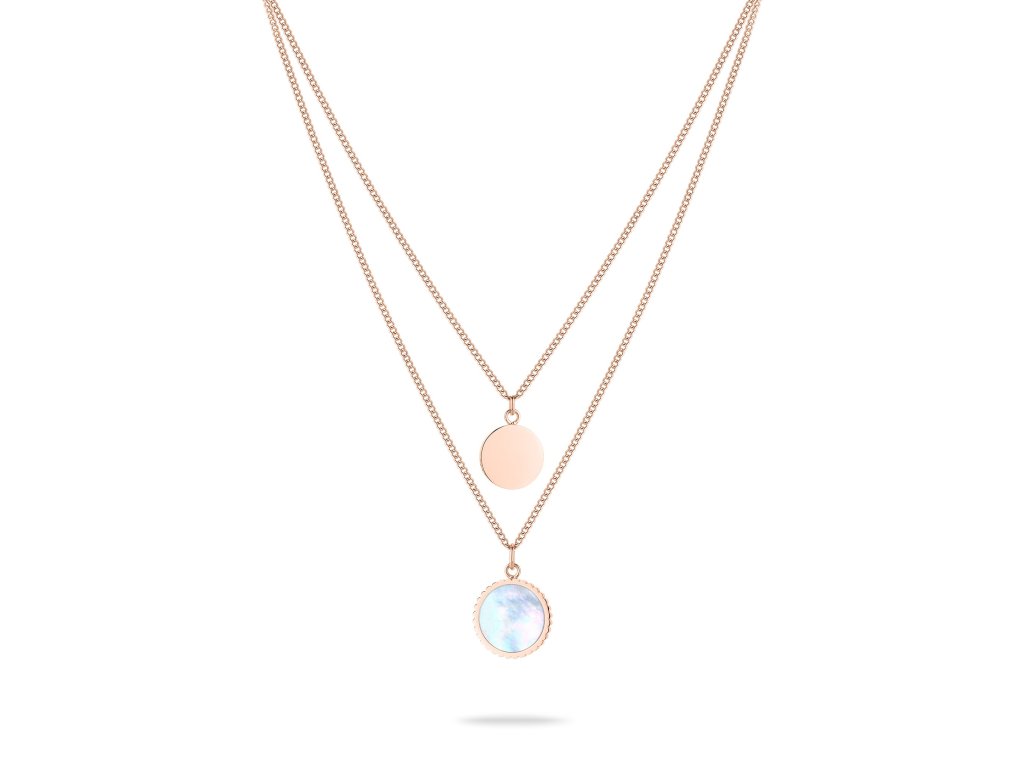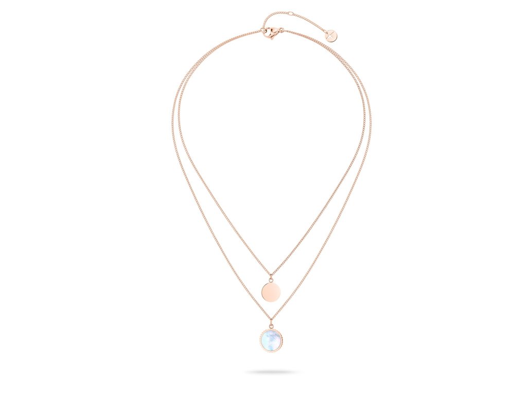 Štýlový dámsky náhrdelník od nemeckej značky Tamaris sa skladá z dvoch retiazok. Kratšia z nich tvoríminimalistický peniaz, čím dlhšie je namontovanýkrásna perla.