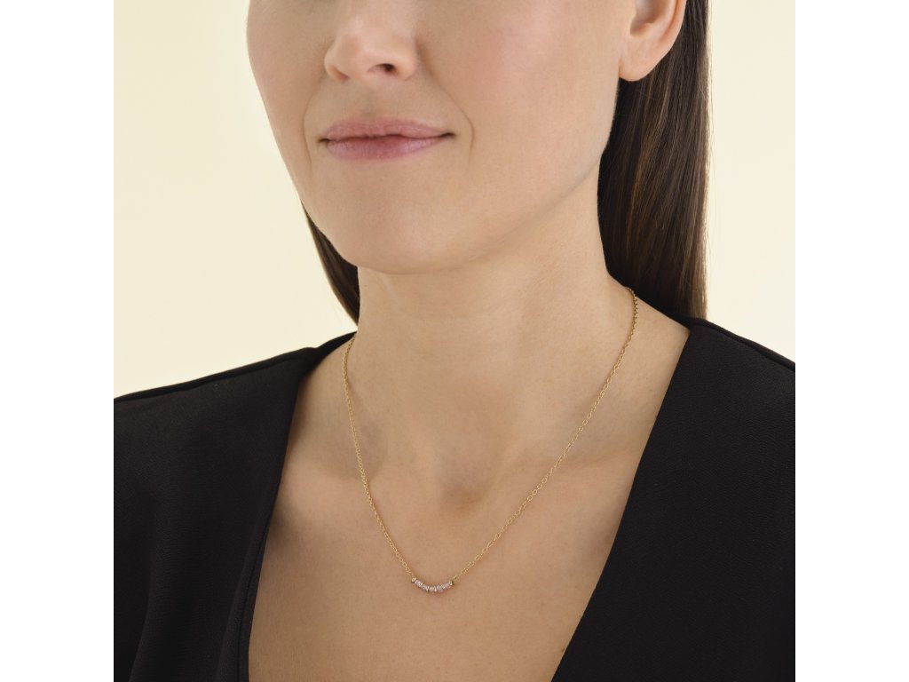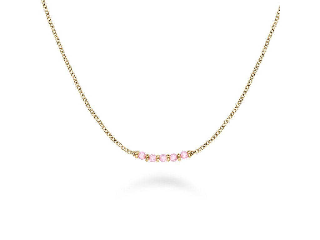 Ak dávate prednosť jemnejším a menej výrazným šperkom, tento retiazkový náhrdelník sa stane vašímobľúbené príslušenstvo pre každú príležitosť. Jemná pozlátená retiazka s korálkami z prírodného kameňa v ružovej farbejemne zdobí váš dekolt.