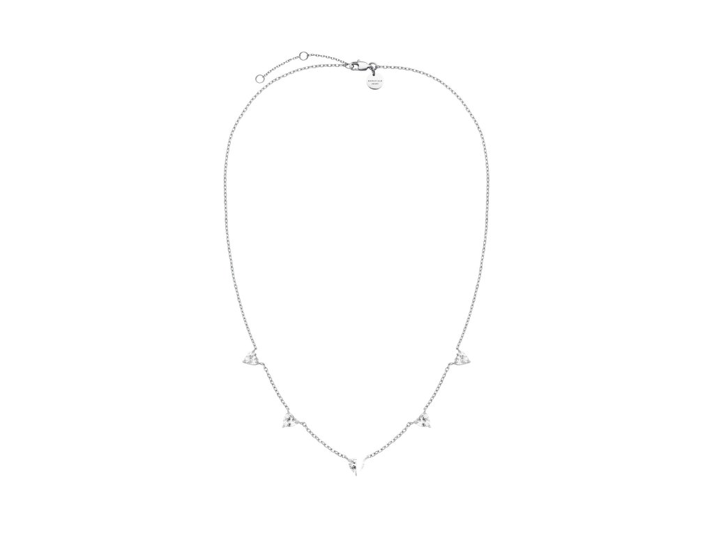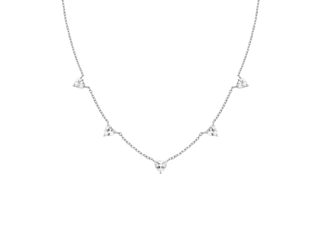 Náhrdelník s radom sŕdc očarí jemnou líniou5 čírych kryštálov v tvare malých srdiečokktoré tvoria elegantný a romantický detail pozdĺž výstrihu.