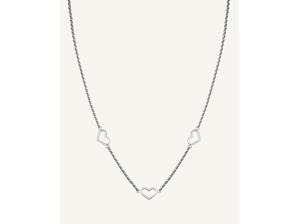 Náhrdelník Rosefield, nehrdzavejúca oceľ, trojité srdce, ródiovaný, nastaviteľná dĺžka 41 - 45 cm.