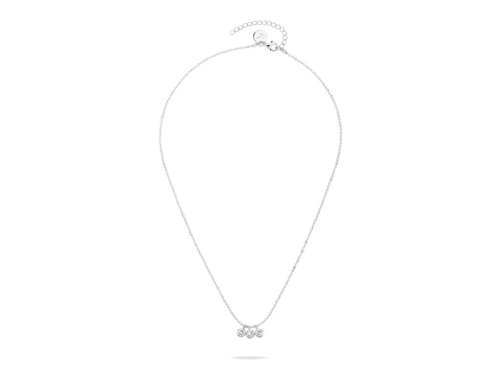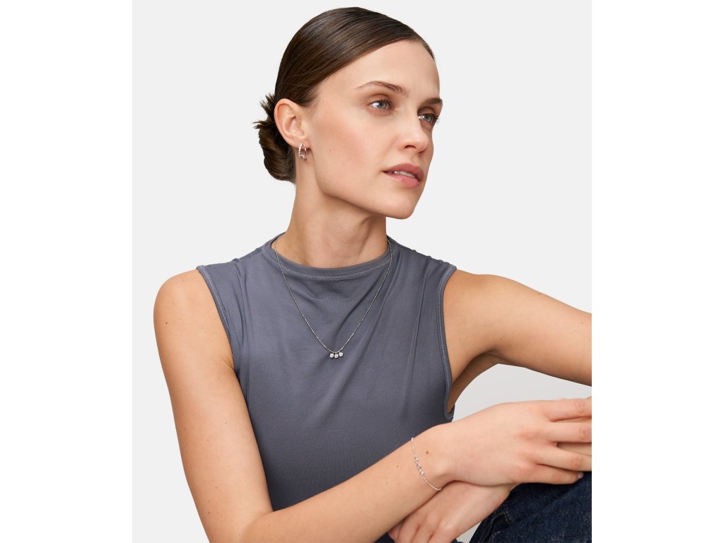 Dámsky náhrdelník Tamaris zo striebra 925 je jemný a elegantný šperk, ktorý dodá outfitu ľahkosť, iskru a moderný ženský nádych. Tri malé prívesky osadené kryštálmi vytvárajú vyvážený detail, ktorý pôsobí čisto, sofistikovane a prirodzene zvýrazňuje dekolt.