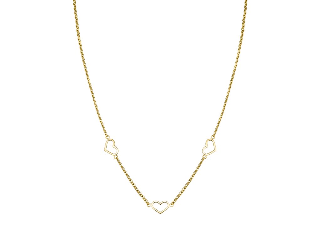 Náhrdelník Rosefield, nerezová oceľ, trojité srdce, pozlátené, nastaviteľná dĺžka 41 - 45 cm.