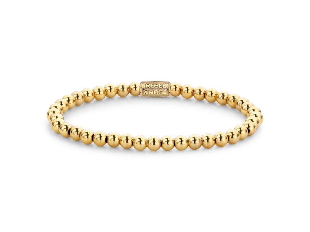 Dámsky náramok zdobenýkorálky z nehrdzavejúcej ocele v zlatej farbe. Tento elegantný korálkový náramok ozdobí vaše zápästie a dodá mu jedinečný šarm a lesk.