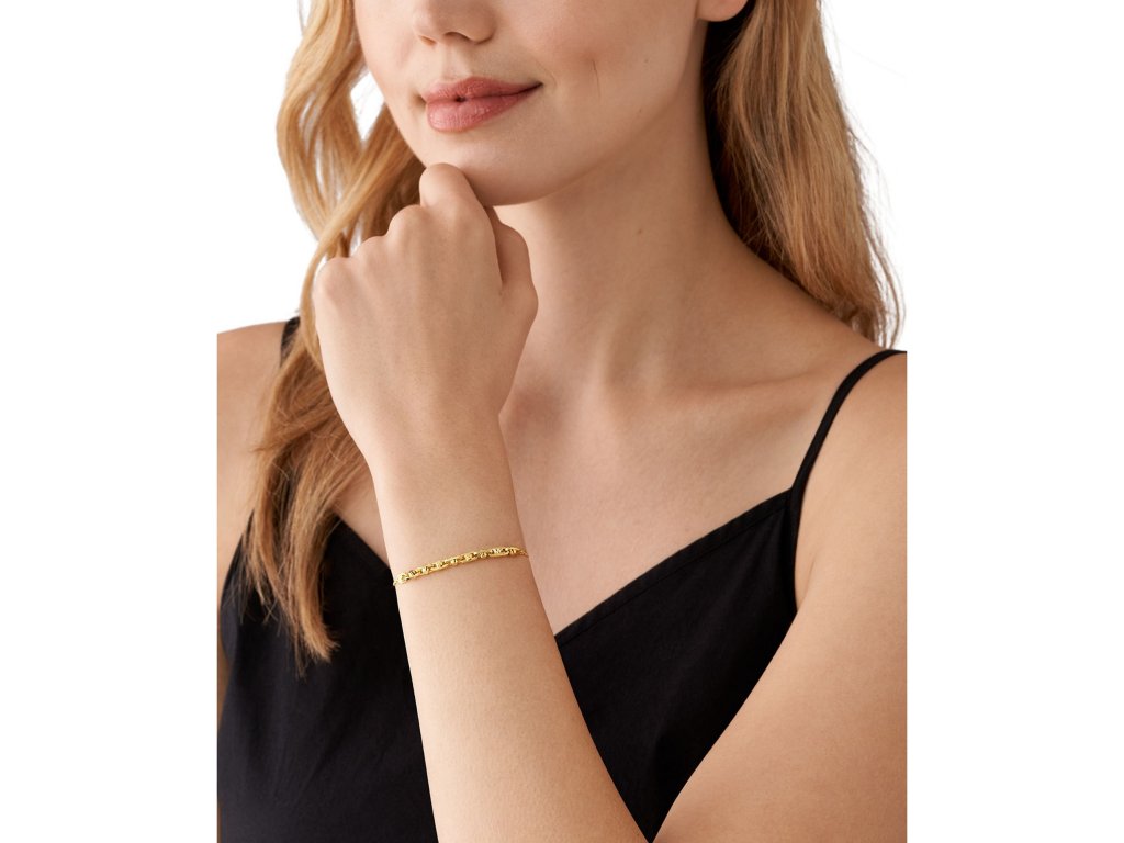 Strieborný dámsky náramok je pozlátený a zdobí ho efektný detail a malé logo MK, ktoré prispieva k jeho nádych luxusu. Šperk je vyrobený zo striebra 925 a váži 2 g. Jeho dĺžku je možné prispôsobiť