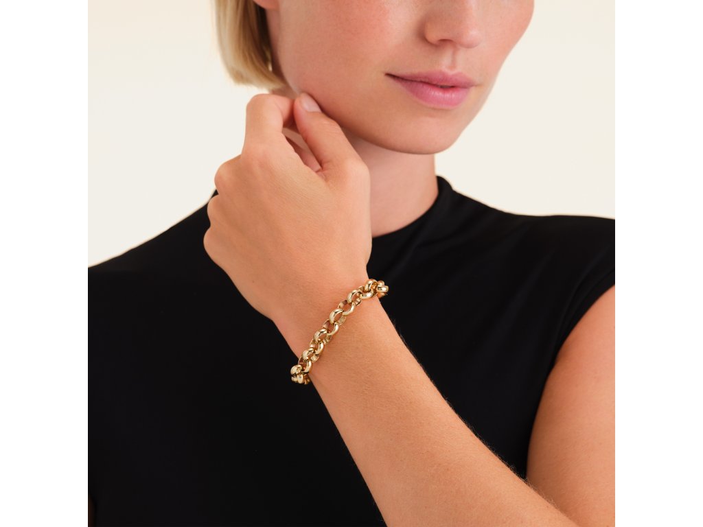 Dámsky náramok s mohutnou retiazkou od značky Rosefield upúta pozornosť svojím výrazným dizajnom a robustnými okrúhlymi očkami.