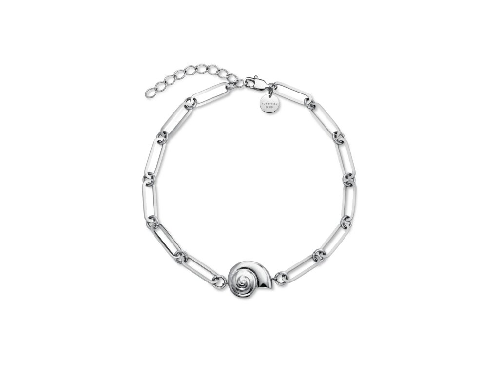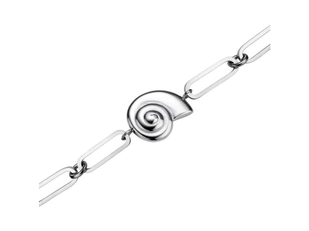 Ozdobte si zápästievýrazný náramok z hrubej retiazky, ktorý je doplnený motívom morskej mušle. Jehostrieborná farba evokuje hlboké morské vody, kam letmo dopadajú slnečné lúče.