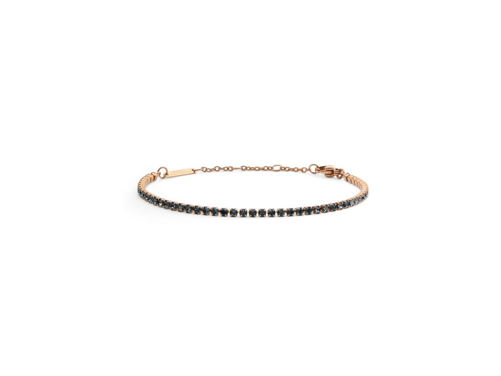 Luxusné trblietky v sofistikovanom dizajne. Náramok Daniel Wellington Nightfall Rose Gold kombinuje ikonický dizajn tenisového náramku s moderným nádychom.Tmavomodré kryštály zirkónov vytvárajú očarujúci kontrast s teplým tónom ružového zlata a dodávajú šperku tajomný a zároveň jemný vzhľad.