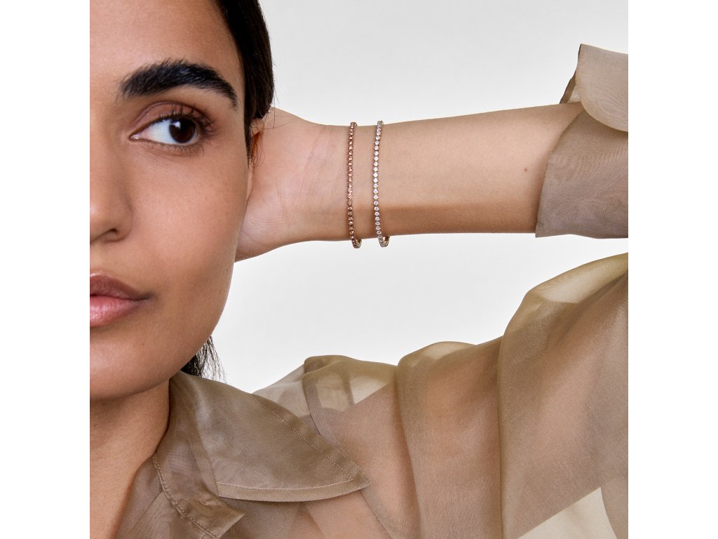 Náramok je vyrobený z vysokokvalitnej nehrdzavejúcej ocele a má povrchovú úpravu v tóne ružového zlata. Každý kryštál je samostatne osadený a pevne pripevnený. Vďaka nastaviteľnému zapínaniu sa náramok prispôsobí veľkosti vášho zápästia.Je ľahký, odolný a pohodlný na nosenie.