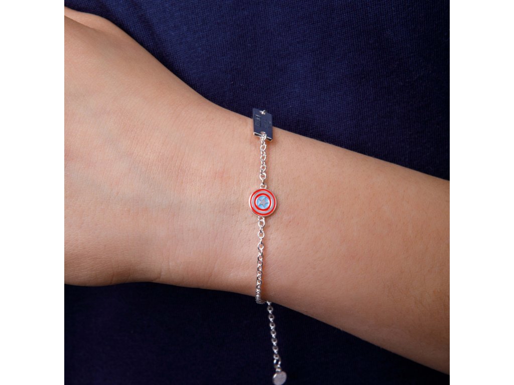 Pre malých aj veľkých fanúšikov superhrdinov. Pútavý náramok od spoločnosti Marvel zdobený klasickým obdĺžnikovým štítkom a symbolom Kapitána Ameriky určite poteší všetkých milovníkov týchto superhrdinov.