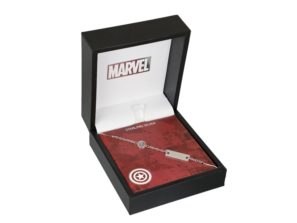 Náramok je vyrobený zo striebra 925/1000, ktoré zaručuje vysokú kvalitu. Hlavným prvkom náramku je strieborná platnička a logo Kapitána Ameriky, ktoré je zdobené červeným a modrým smaltom. Na konci nastavovača sa nachádza aj logo Avengers, zdobené červeným smaltom.