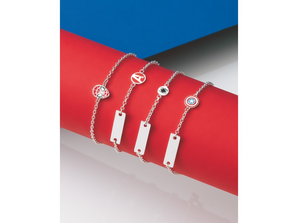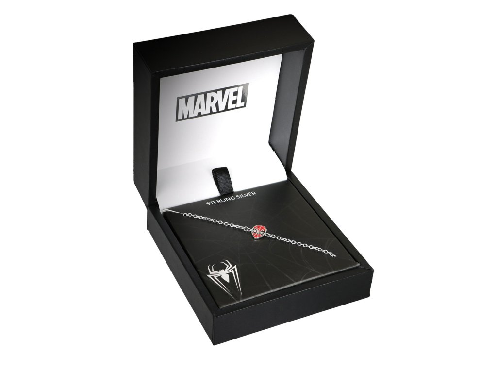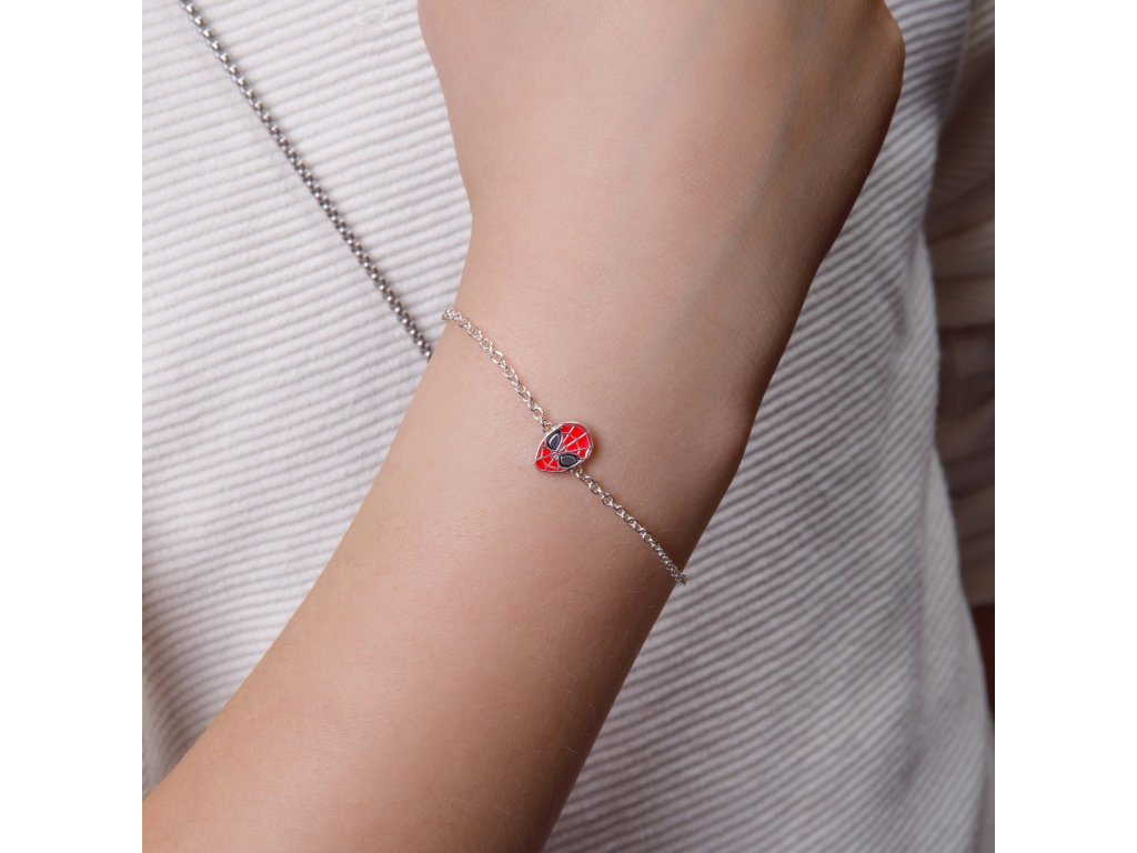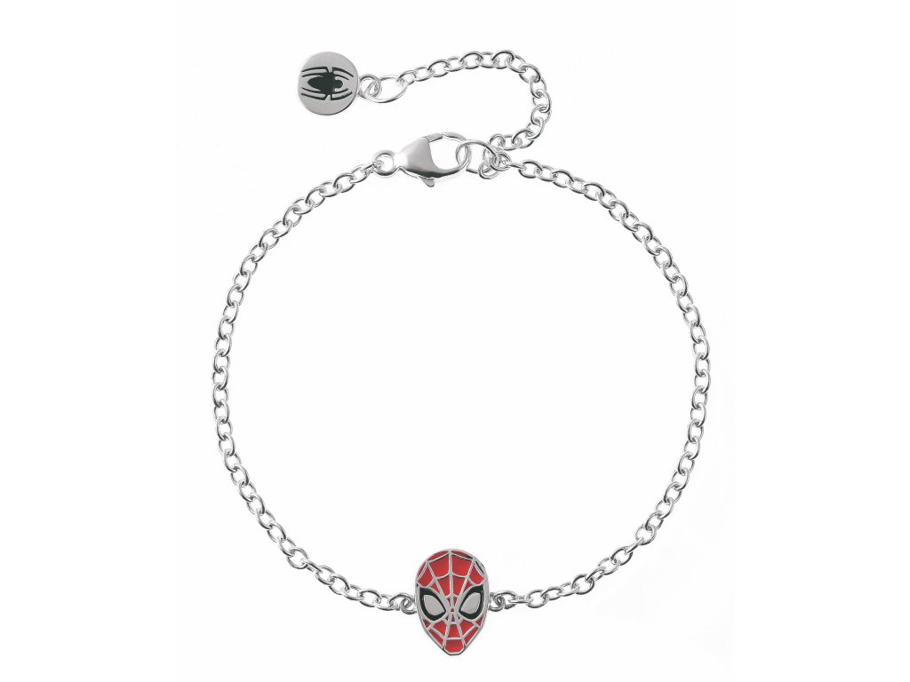 Náramok je vyrobený zo striebra 925/1000. Náramku dominuje hlava Spider-Mana detailne vyobrazená a oživená čiernym a červeným smaltom. Jemné očká retiazky vytvárajú ľahký a elegantný dizajn, ktorý sa pohodlne nosí a prispôsobí sa malým aj mladším zápästiam. Tento kontrastný dizajn priťahuje pozornosť a vyjadruje jedinečný štýl nositeľa.