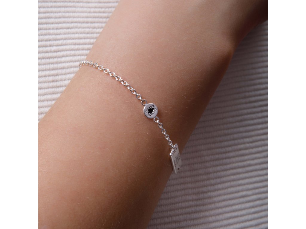 Sofistikovaný náramok z retiazky rýdzosti 925/1000 je tvorený obľúbenými jemnými očkami. Náramku dominuje obdĺžniková platnička tiež zo striebra 925/1000. Náramok zdobí symbol pavúka v čiernom smalte a koniec nastavovača zdobí hlava obľúbeného Spider-Mana, tiež v smalte.