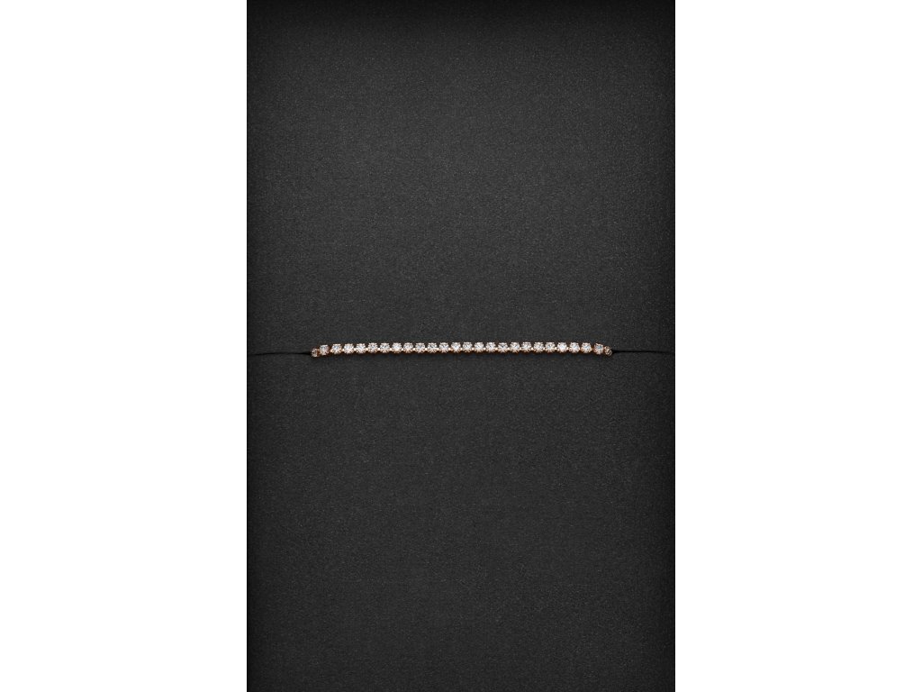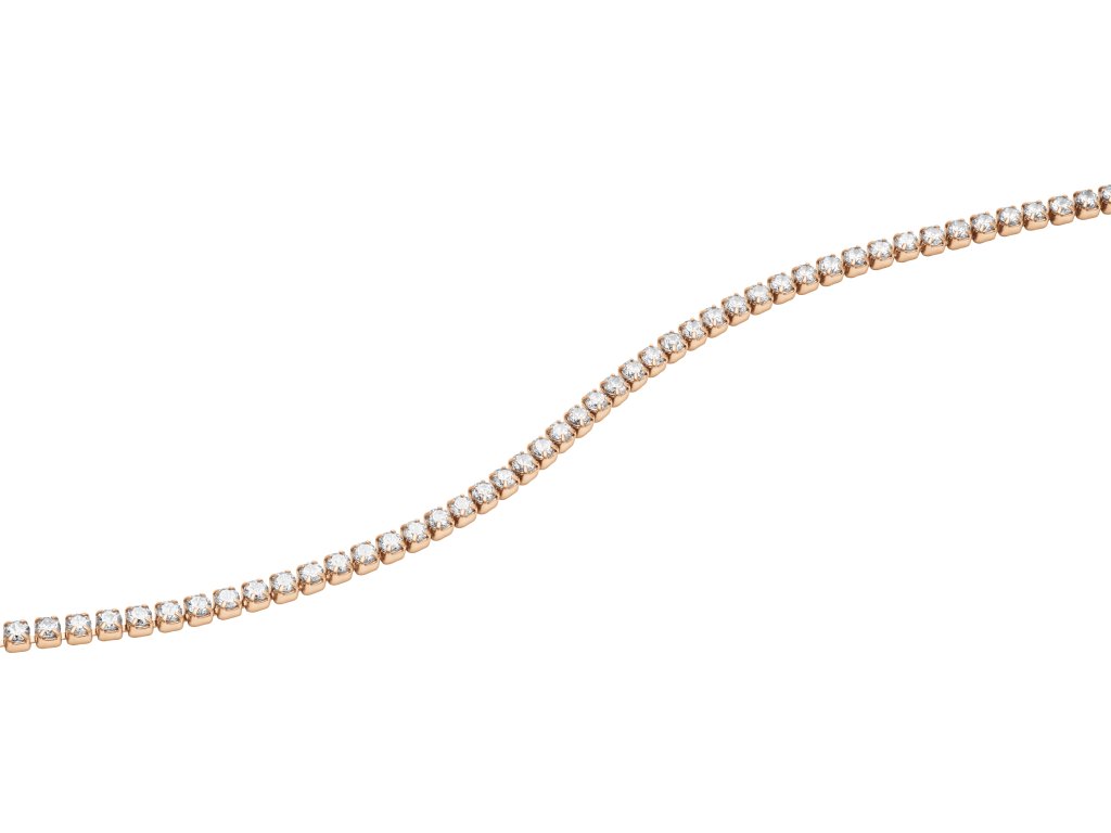 Náramok z drobných článkov z ružového zlata jemne zvýraznených kubickými zirkónmi podčiarkuje jemnosť a eleganciu svojej nositeľky.