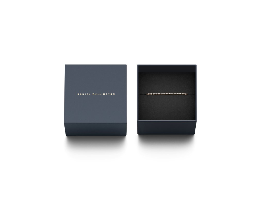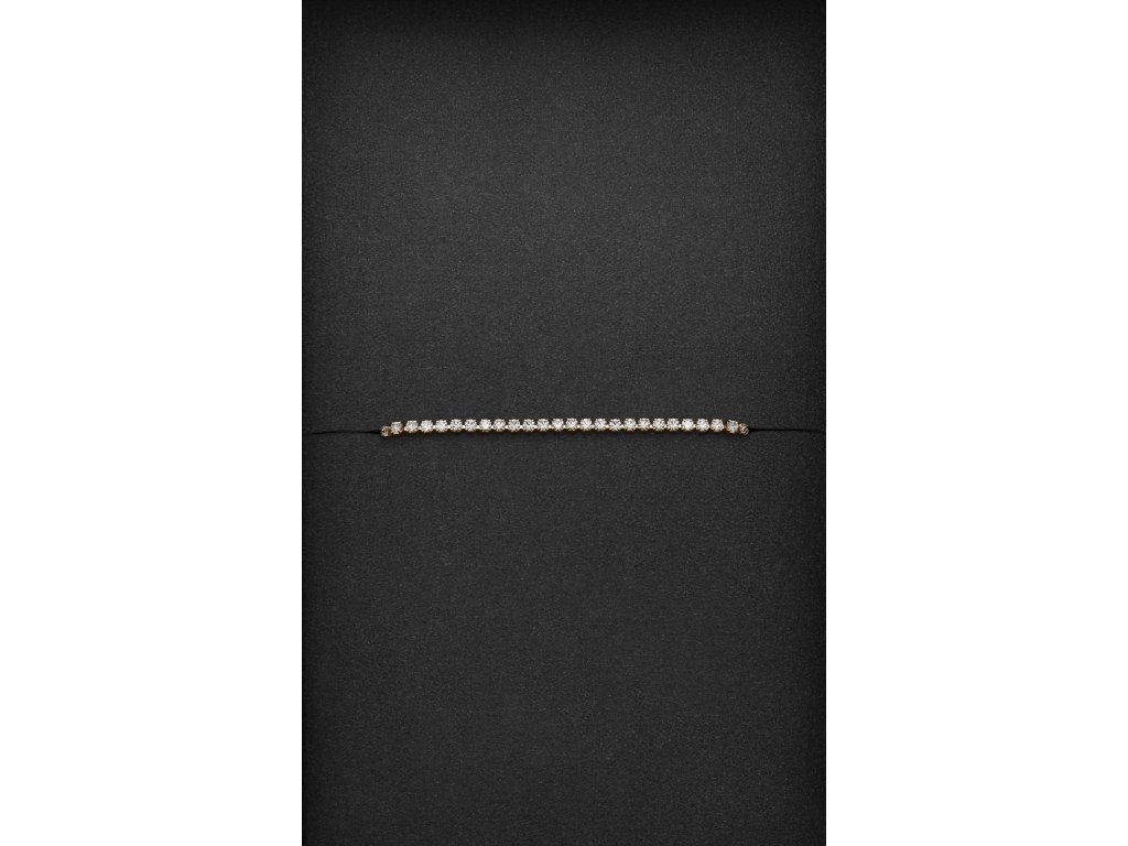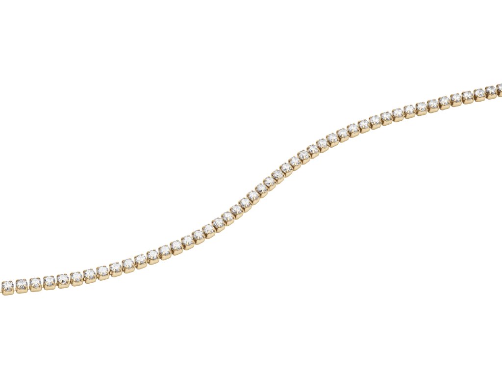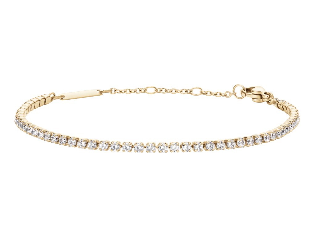 Náramok z malých zlatých článkov jemne zvýraznených zirkónmi podčiarkuje jemnosť a eleganciu svojej nositeľky.