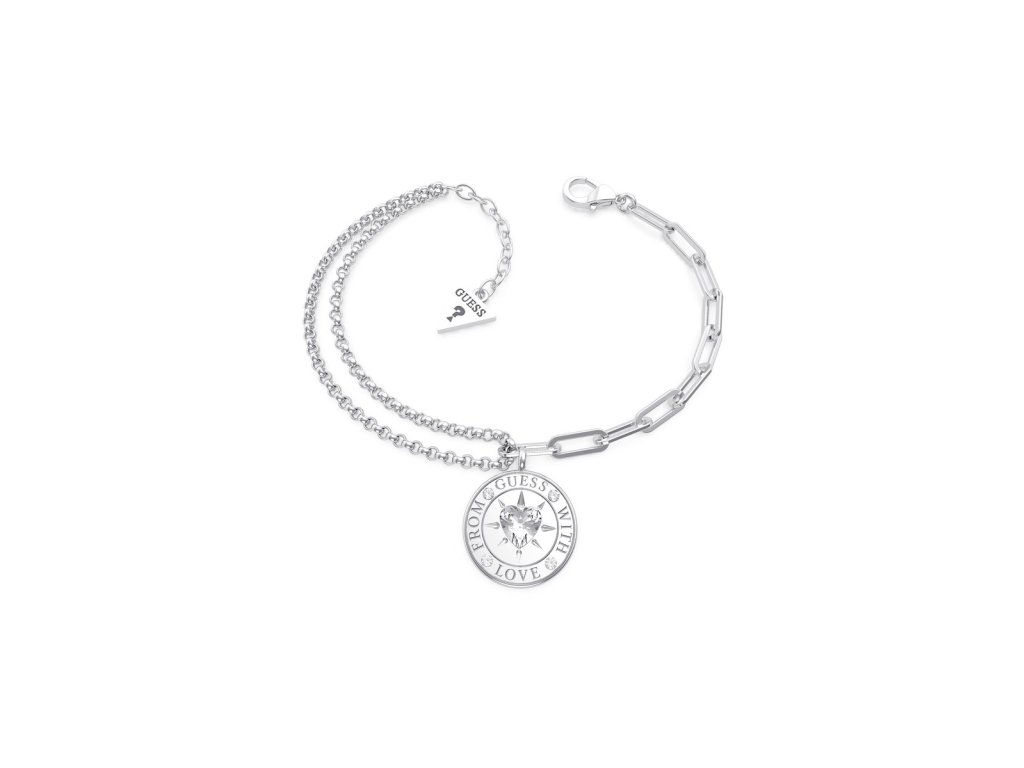 NÁRAMOK GUESS WOMAN UBB70000-S (S ). Materiál: MATERIÁL: OCEĽ. Farba: STRIEBORNÁ. Rozmery: S.. . DVOJITÁ RETIAZKA 17 MM MINCA RH