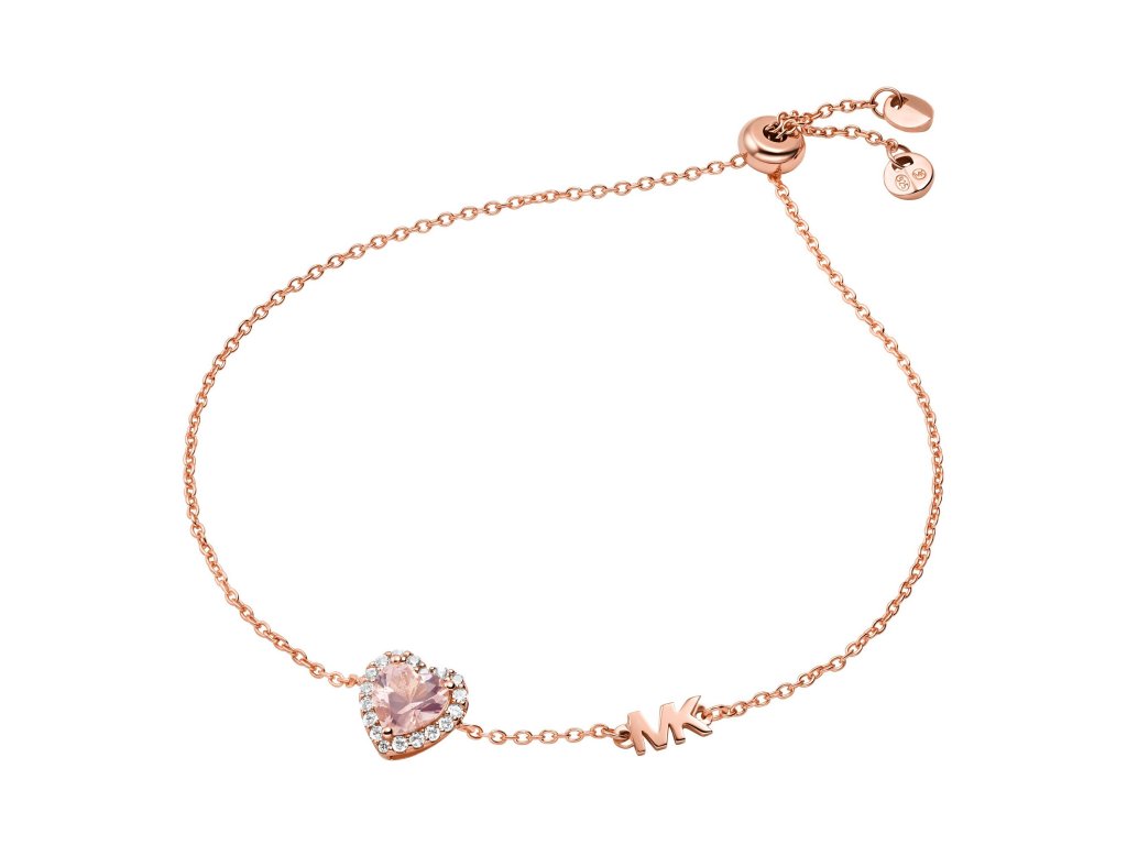 Dámsky náramok z ružového zlata s trblietavým srdiečkom a logom Michael Kors prináša dokonale vyváženú kombináciu elegancie a výraznosti.Základ šperku je vyrobený z kvalitného striebra 925, zirkónové kryštály a dômyselne zakomponované logo MK mu dodávajú lesk a nádych luxusu a jemnosti.