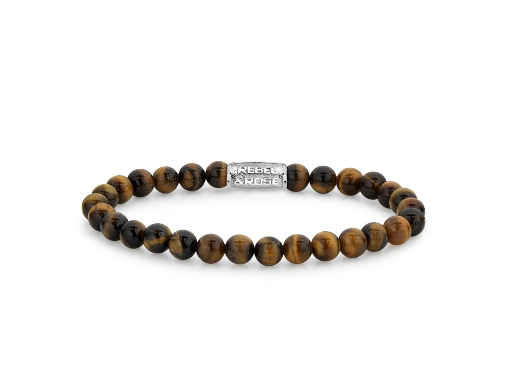 Náramok s korálkami z tigrieho oka v kombinácii hnedých odtieňov je zdobený strieborným zapínaním. Korálky majú priemer 6 mm.