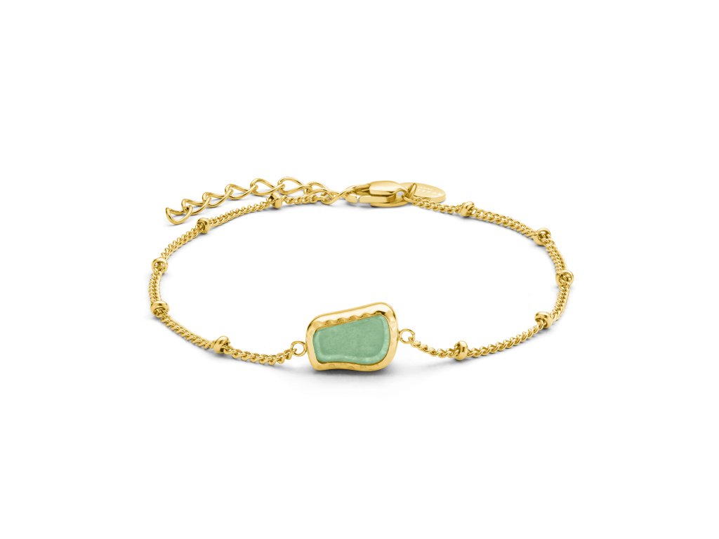 Náramok Rosefield, nehrdzavejúca oceľ, pozlátený, pravý prírodný kameň Jade, nastaviteľná dĺžka 16,5 - 19,5 cm.