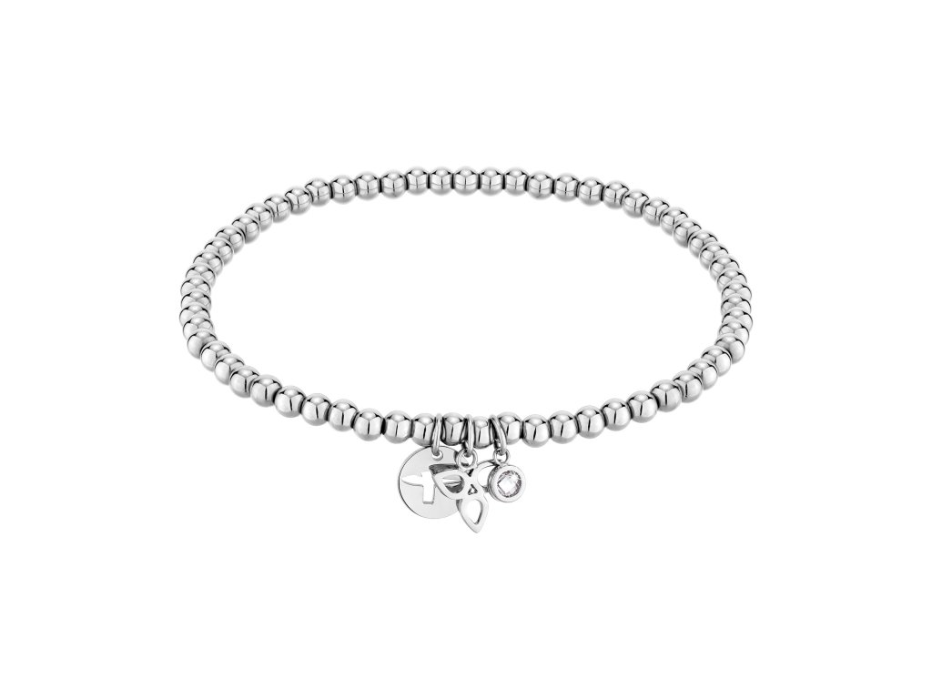Módny dámsky náramok od nemeckej značky Tamaris je zložený z korálok azdobené tromi príveskami. Jeden z príveskov je osadenýs trblietavým čírym zirkónom. Vďaka svojmu dizajnu je vhodný na slávnostné aj každodenné nosenie.