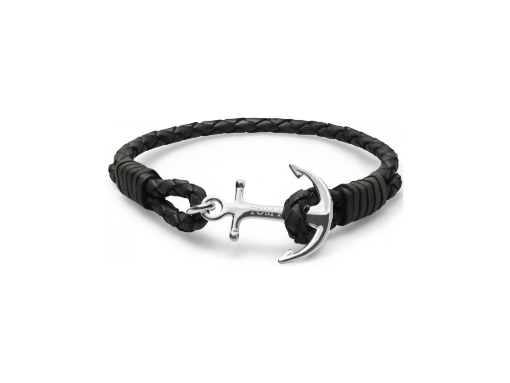 NÁRAMOK TOM HOPE UNISEX TM0200 (18CM ). Materiál: MATERIÁL: KOŽA, STRIEBRO. Farba: ČIERNA. Rozmery: . TOM HOPE JET BLACK PELLE NERA + ANCORA ARGENTO S