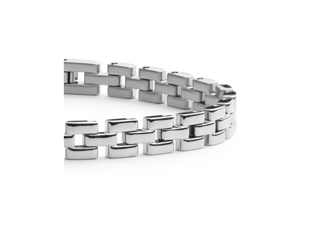 Náramok je vyrobený z nehrdzavejúcej ocele a je k dispozícii v niekoľkých veľkostiach a v zlatej, ružovozlatej a striebornej farbe.