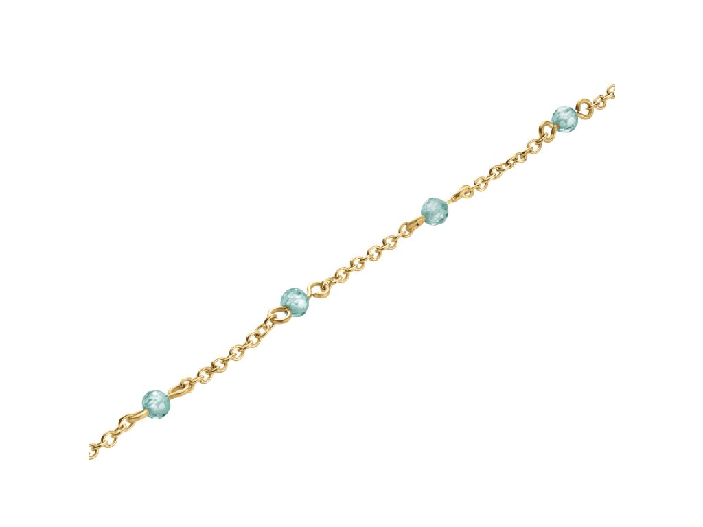 Náramok sa skladá z ľahkej malej retiazky zkvalitná nehrdzavejúca oceľ a po obvode pravidelne dopĺňanémodré korálky z prírodného kameňa.