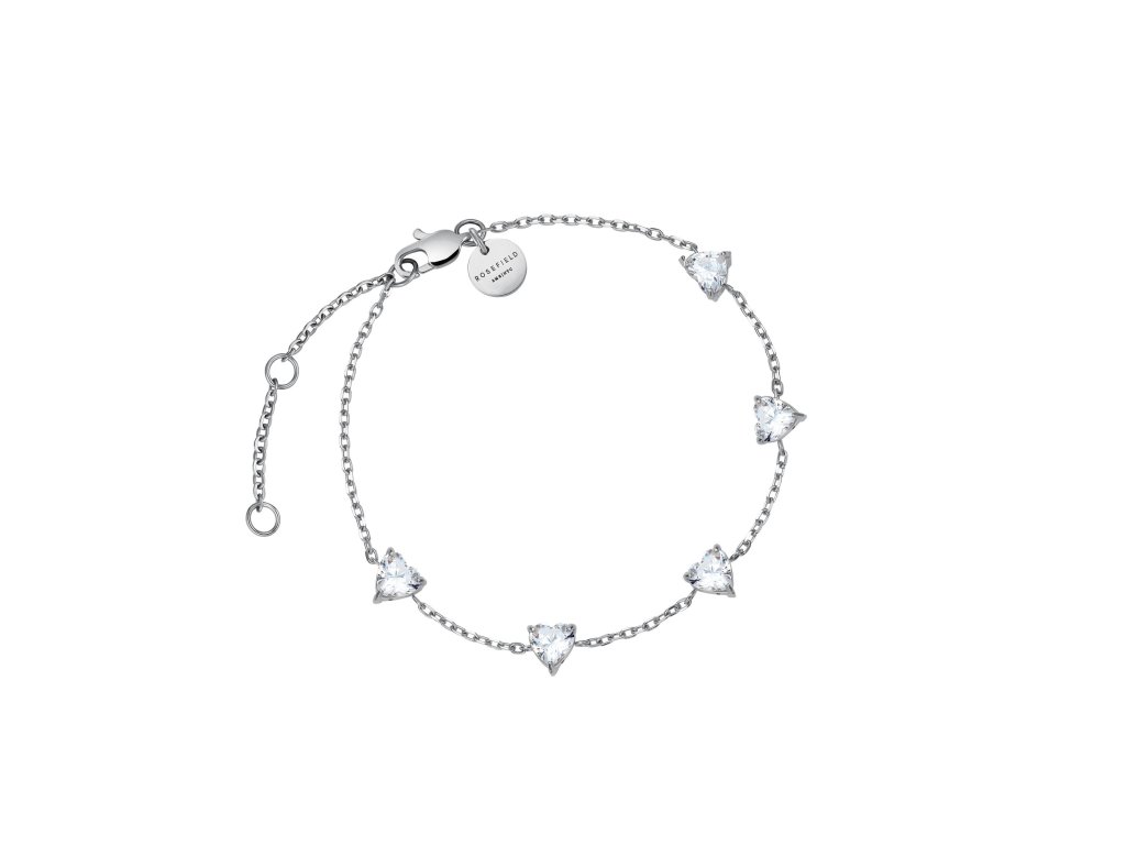 Náramok Row Hearts očarí jemnýmčíre kryštály v tvare malých srdiečokktoré vytvárajú elegantný a romantický detail.