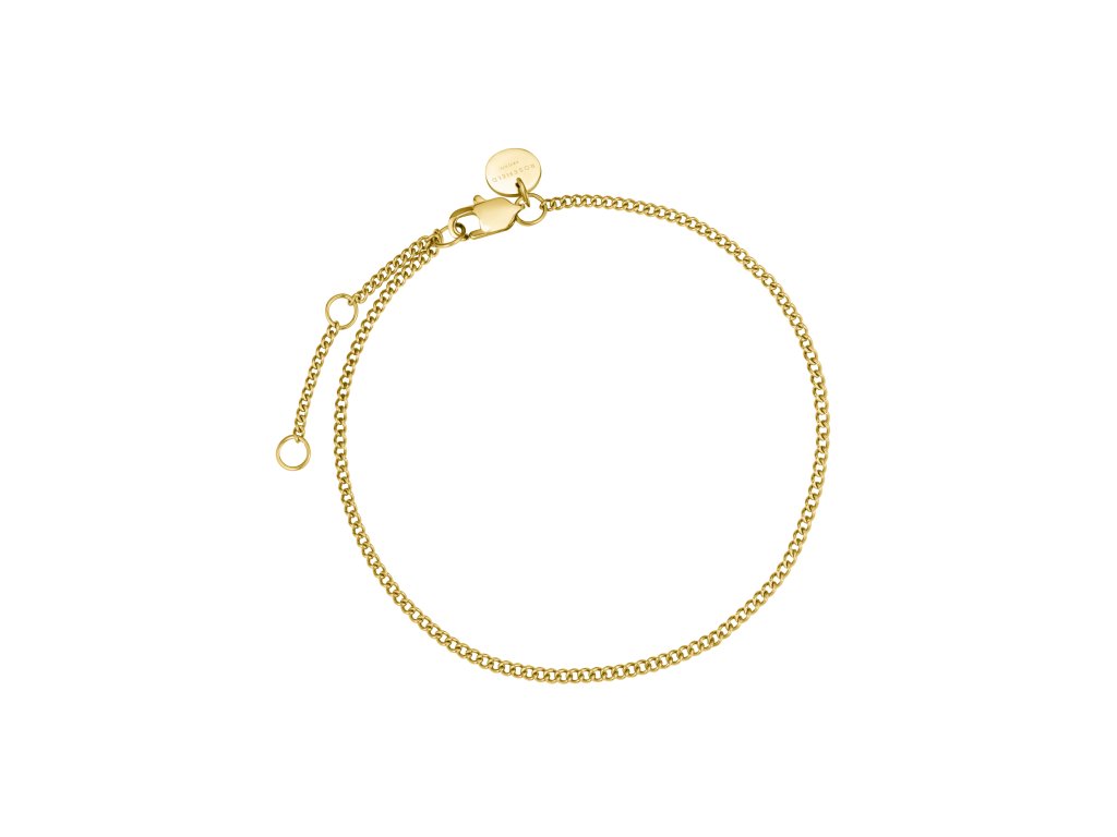 Náramok Rosefield, nerezová oceľ, Flat Curb, pozlátený, nastaviteľná dĺžka 16,5 - 19,5 cm.