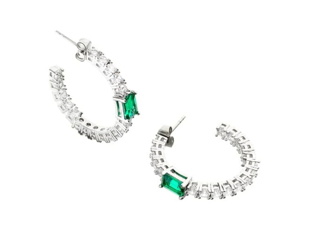 NÁUŠNICE CHIARA FERRAGNI DÁMSKE J19AWJ14 (3CM ). Materiál: MATERIÁL: KOV. Farba: FARBA: ŠEDÁ. Rozmery: . SMARAGDOVÉ UCHO.SILVER+WH CZ+GN NANO 30MM
