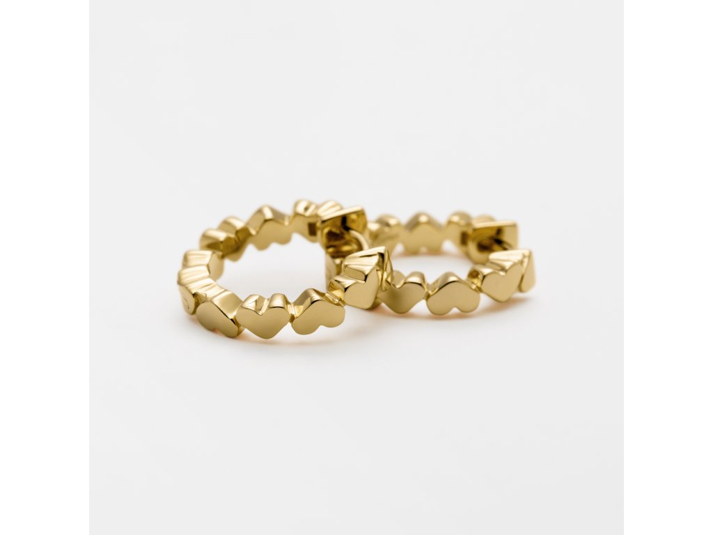 Sú vyrobené zstriebro 925, ktoré je pozlátenéa vysokokvalitné ródiovanie a paládiová vrstva zabránia poškodeniu. Náušnice majú okrúhly tvar a efekt zatočenia. Náušnice majú priemer 9,5 milimetra a lesklý povrch. Hmotnosť šperku je 3,52 g.