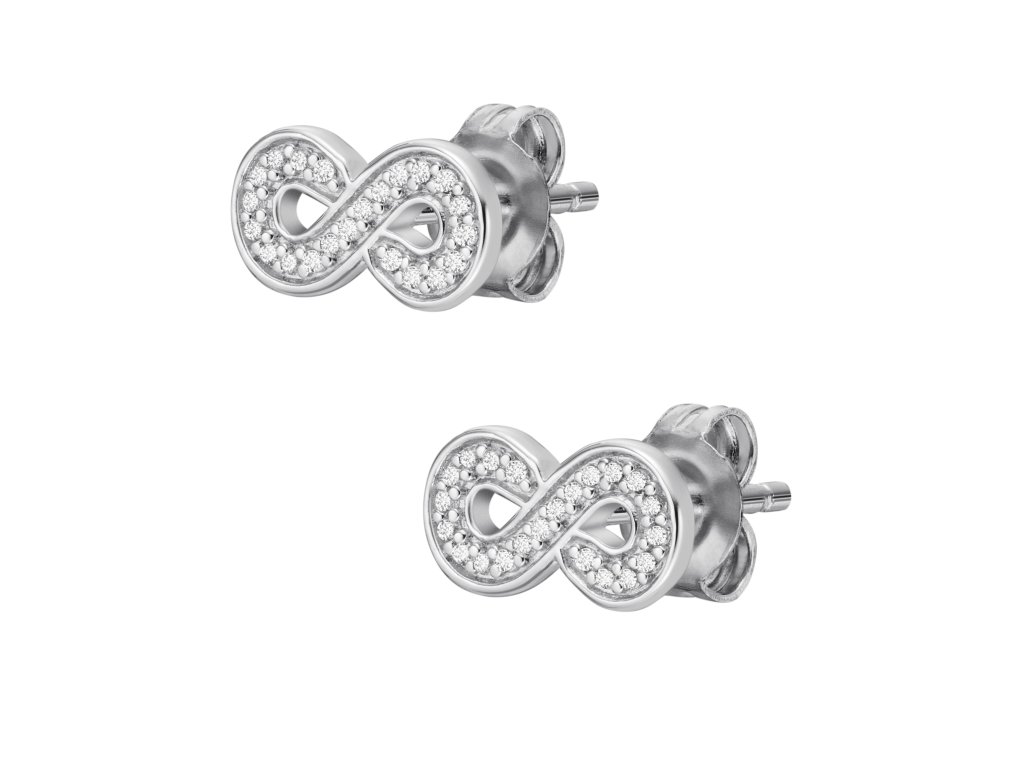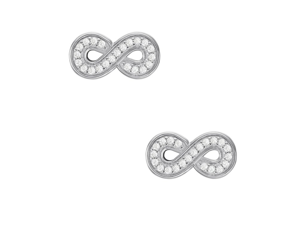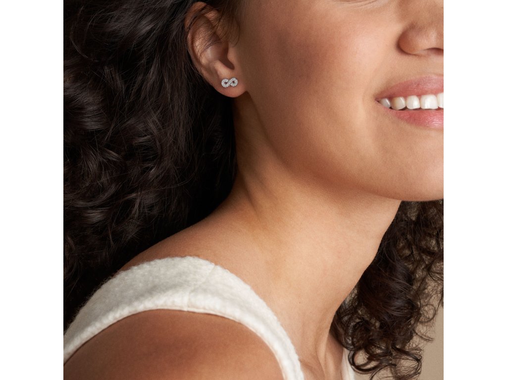 Náušnice Infinity sú vyrobené zo striebra 925 amajú tvar symbolu nekonečna. Sú zdobené malými čírymi kryštálmi. Zapínajú sa na gombík a vážia 2 g.