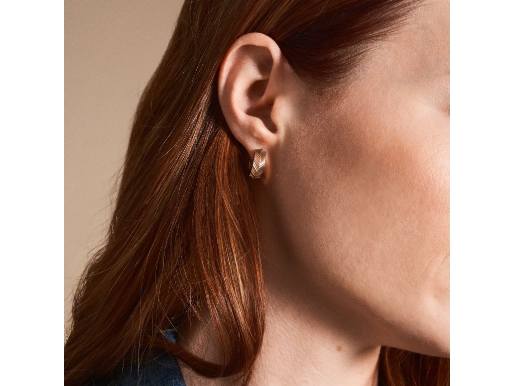 Náušnice sú vyrobené z kvalitnej nehrdzavejúcej ocele, ktorá je pozlátená do ružového zlata.Ich jemná lineárna štruktúra sa vo svetle leskne.