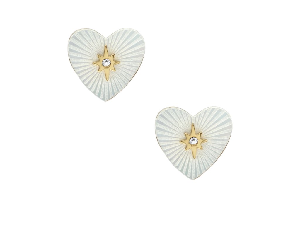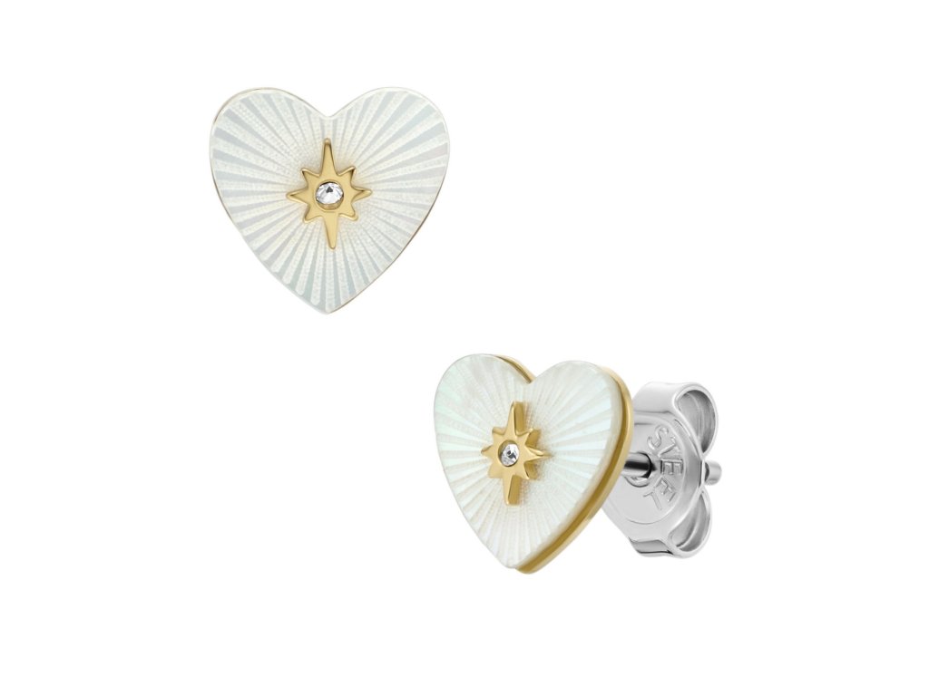 Náušnice Fossil zaujmú svojím jemným dizajnom plným detailovkombinuje tvar srdca s perleťou, pozláteným detailom hviezdy a krištáľom. Ideálna voľba na špeciálne príležitosti aj na každodenné nosenie, keď chcete dodať eleganciu.