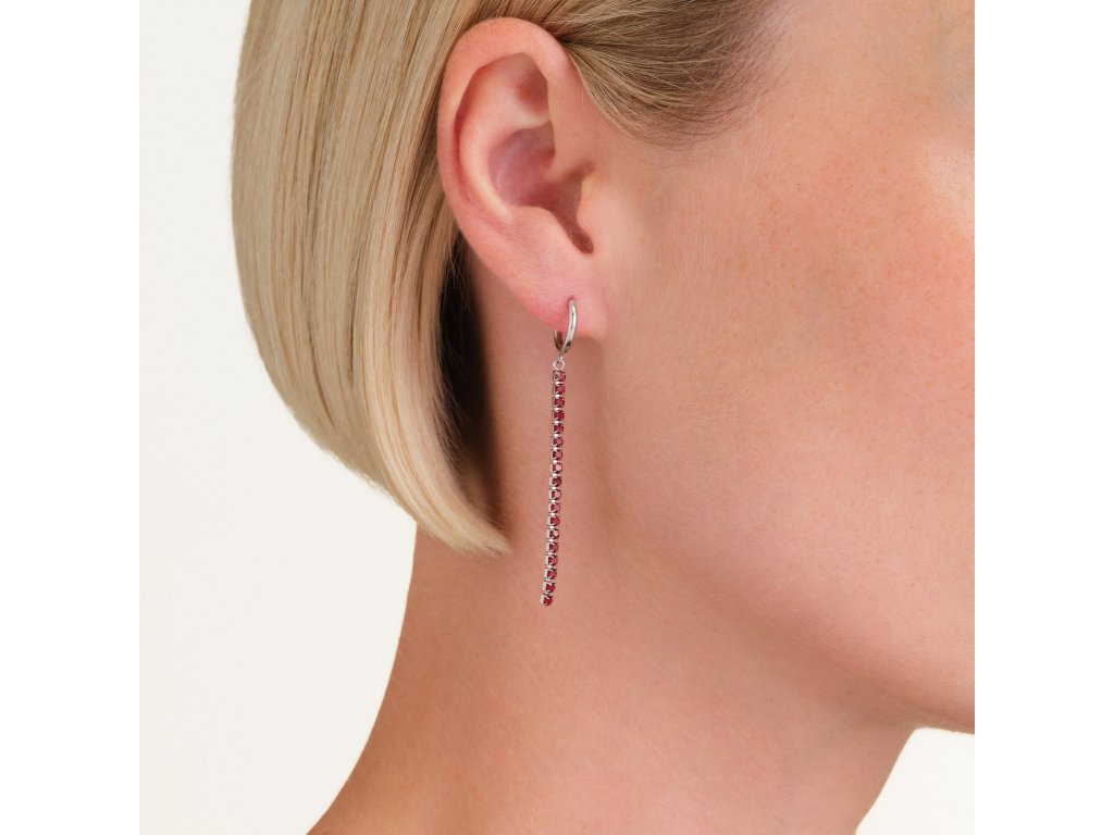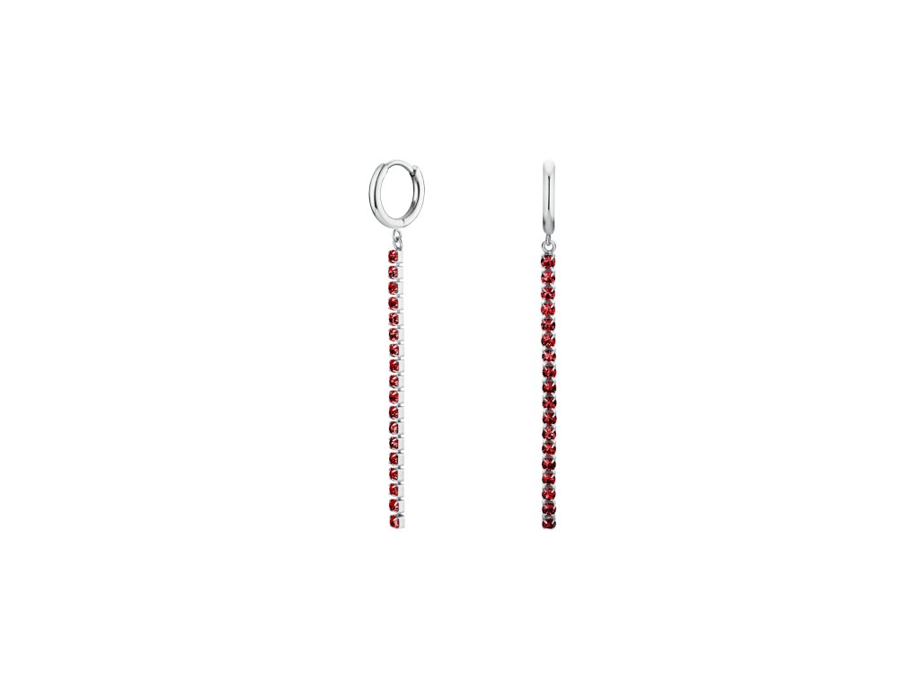 Náušnice zaujmú kombináciou krúžku a tenkej línie, ktorá hladko lemuje tvár.Náušnice sú osadené 18 tmavočervenými kryštálmiktoré žiaria pri každom vašom pohybe a dodávajú vám tajomný pôvab.