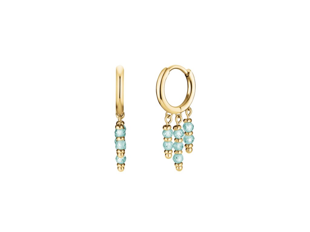 Pozlátený malý prsteň z nehrdzavejúcej ocele zdobia 3 mini retiazky z modrých korálok a ešte drobnejšie korálky z nehrdzavejúcej ocele.Kombinácia zlatej a bledomodrej farby evokuje slnečný deň s vôňou kvetov.