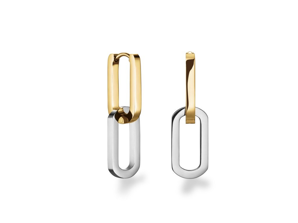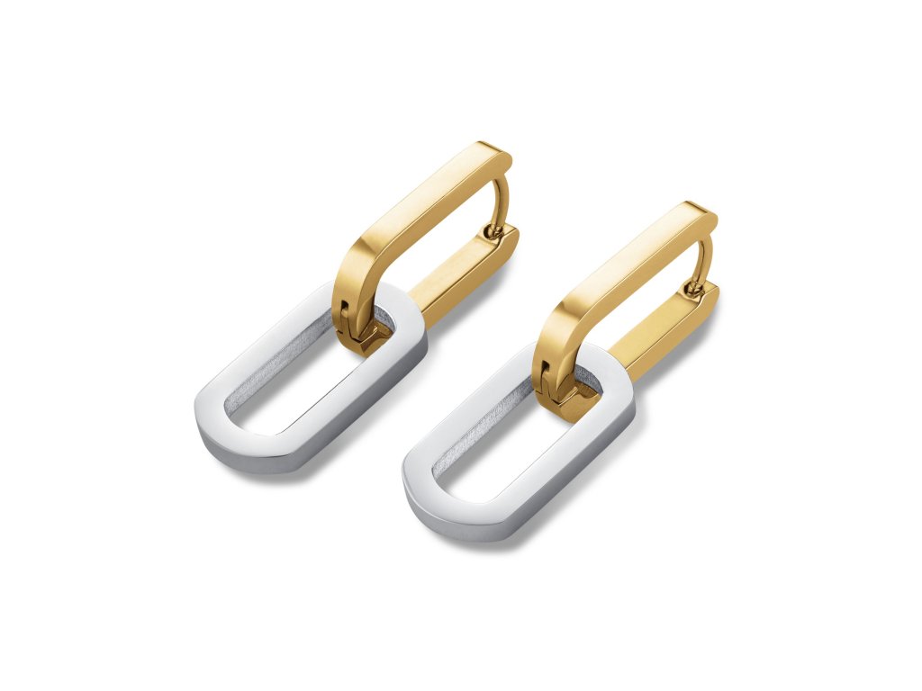 Náušnice sa skladajú zdva podlhovasté kruhy, z ktorých jeden je pozlátený 14-karátovým zlatom. Náušnice sú vyrobené znerezovej ocele a majú bezpečnostné uzávery. Špeciálna povrchová úprava zabezpečujetrvanlivosť náušníc a zabraňuje zmene farby. Šperk je zabalený v elegantnom puzdre a krabičke,čo z neho robí skvelý darček.