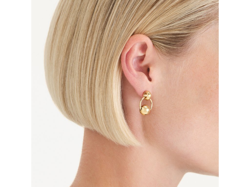 Náušnice s príveskom kombinujúprvok krúžkov a guličiek, ktorý dodáva šperkom kreativitu a hravosť. Vyrobené z vysoko kvalitnej nehrdzavejúcej ocele a pozlátené. Špeciálna povrchová úprava im dodávaneprekonateľný lesk a nádych luxusuktoré si zaslúžite.