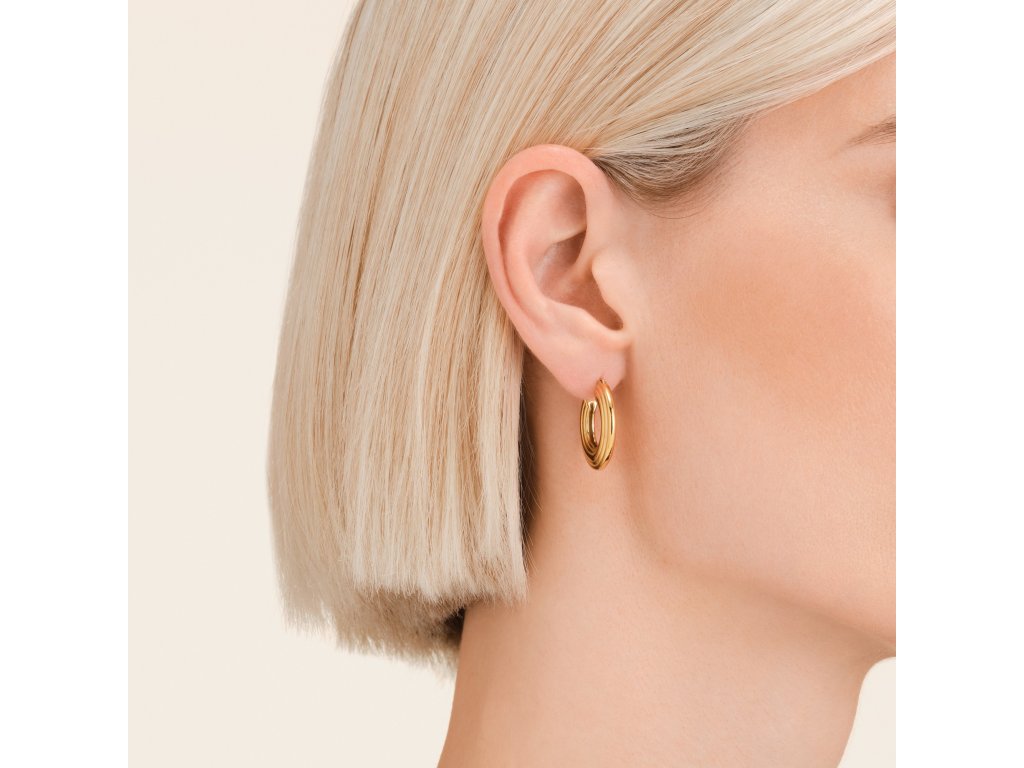 Sú vyrobené zpozlátená nehrdzavejúca oceľ, majú praktickú okrúhlu sponu a priemer 1 cm. Vďaka svojim proporciám sú ideálne na každodenné nosenie - sú nenápadné, ale pôsobivé.
