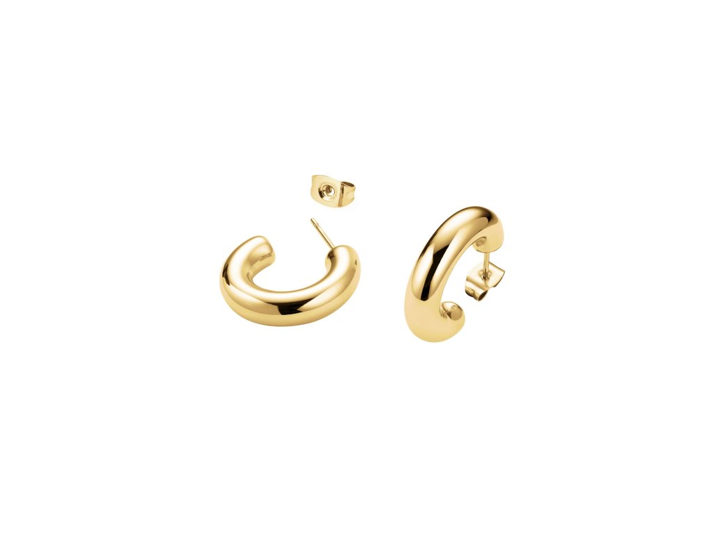 Trendy pozlátené hladké polkruhy sú vyrobené z vysoko kvalitnej nehrdzavejúcej ocele.Špeciálny lesklý povrch zvyšuje ich atraktivitu a robí z nich neprehliadnuteľný doplnok.