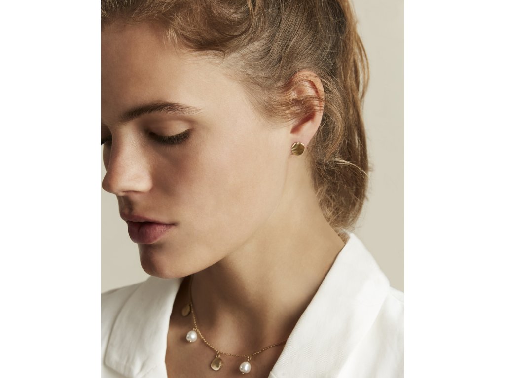 Pozlátené náušnice Shell Studs značky Rosefield poteší milovníkov morskej symboliky a jemných detailov.Štylizovaný tvar mušle dodáva šperku hravý a zároveň vkusný vzhľad, ktorý štýlovo doplní letné a minimalistické outfity.