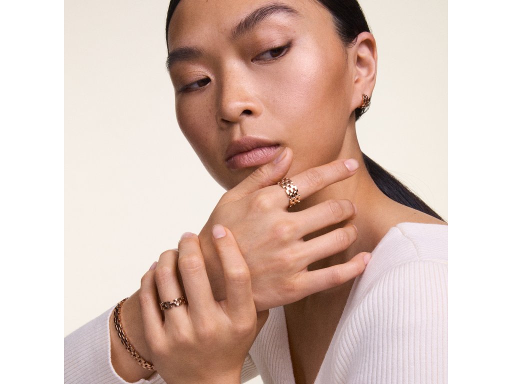 Dámske náušnice 5-Link z ružového zlata, vyrobené z 5 článkov, súsynonymum originálnej elegancie.