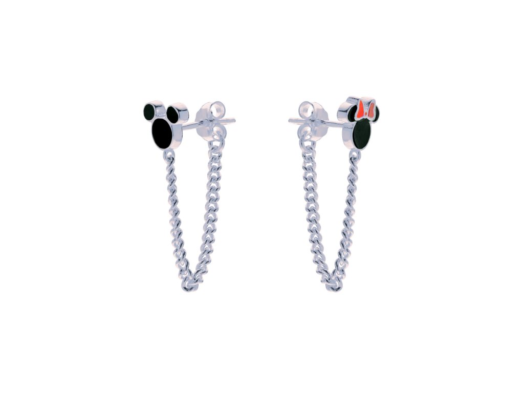 Náušnice sú vyrobené zo striebra 925/1000, ktoré je vhodné na každodenné nosenie. Motívy sú zdobené čiernym a červeným smaltom a zvýrazňujú ikonické detaily obľúbeného páru. Závesné prevedenie so zapínaním na gombíky zaručuje pohodlné a bezpečné nosenie. Náušnice sú dlhé 2 cm a vážia 1,8 g. Ide o oficiálne licencovaný výrobok spoločnosti Disney.