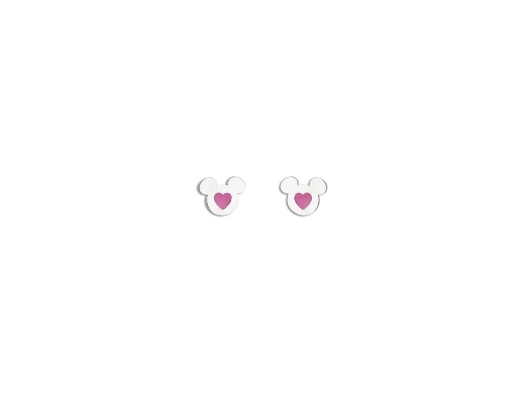 Náušnice Mickey Mouse od spoločnosti Disney sú vyrobené z nehrdzavejúcej ocele. Pôsobivé je ružové smaltované srdiečko umiestnené v strede každej náušnice, ktoré šperku dodáva jemnosť. Šperk jejednoduchý a čistý dizajn. Tieto náušnice sa zapínajú na puzetu, čo zaručuje pohodlné nosenie a zabraňuje strate náušníc. Dodávajú sa v štýlovej krabičke.