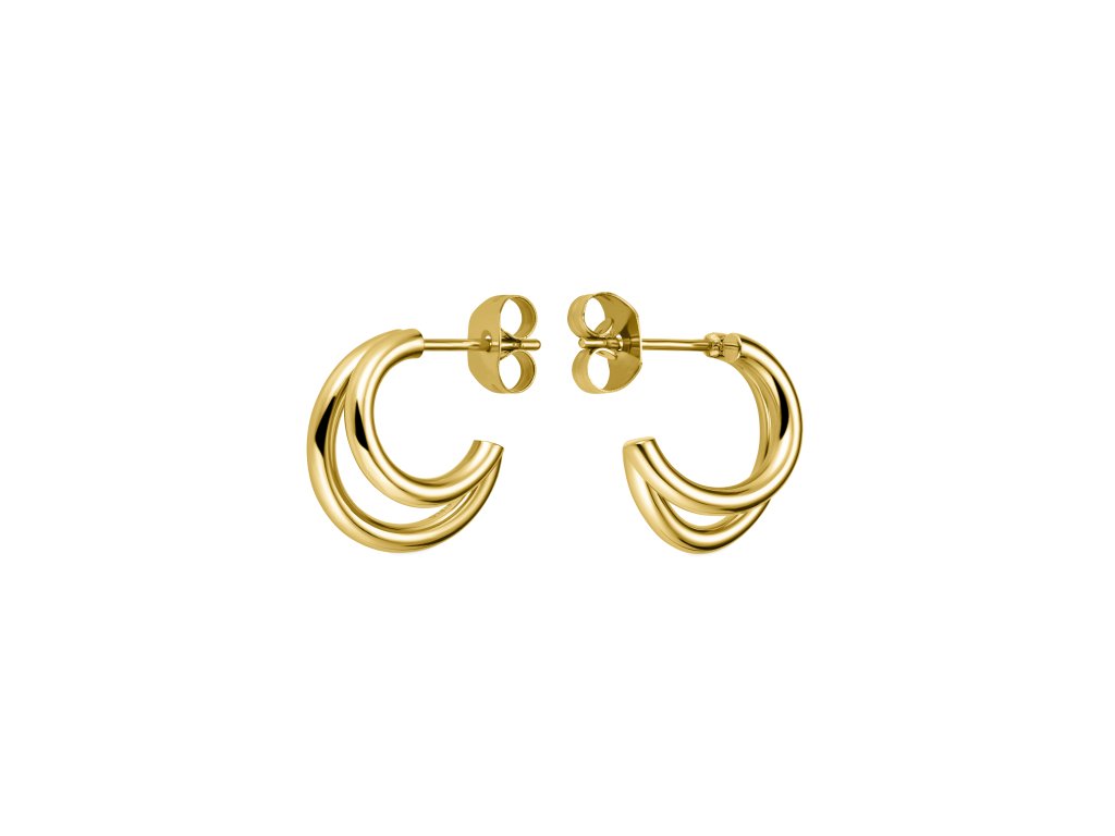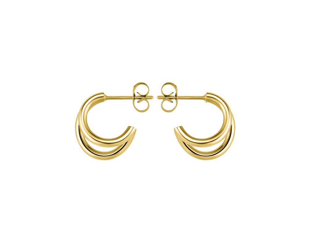 Náušnice Rosefield, nerezová oceľ, dvojitý kruh, pozlátené, lesk, prívesok.