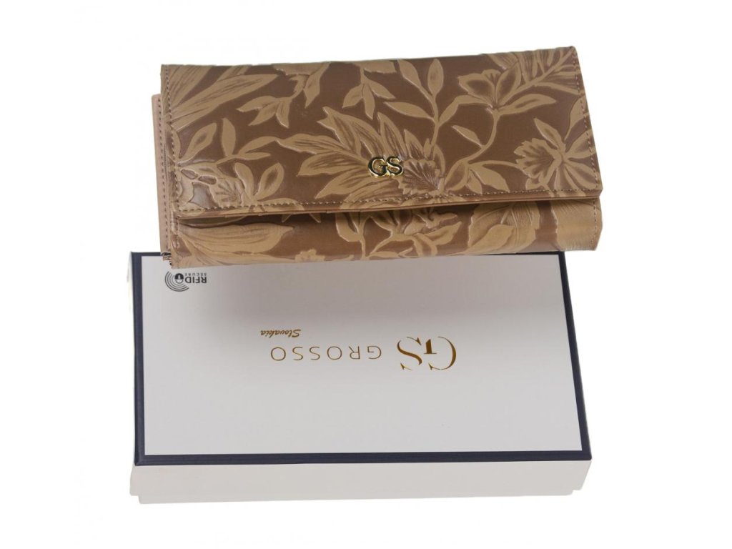 🍯 GROSSO Karamelovo-hnedá peňaženka s kvetinovým motívom