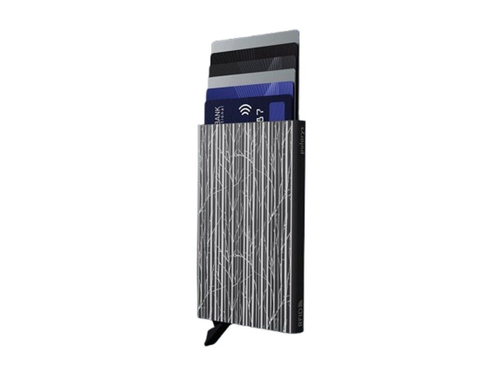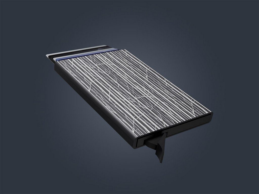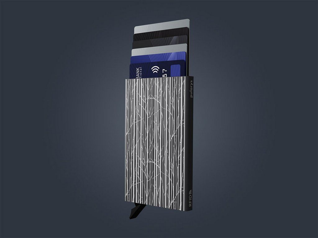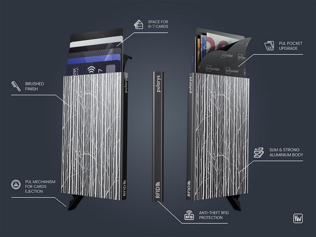 Pularys Winter Birches sivé puzdro na karty a doklady z brúseného hliníka kombinuje minimalistický vzhľad s jemným zimným motívom brezy a praktickým každodenným použitím. Elegantný dizajn inšpirovaný prírodou dodáva tomuto doplnku originálny charakter a robí z neho štýlovú alternatívu klasickej peňaženky.