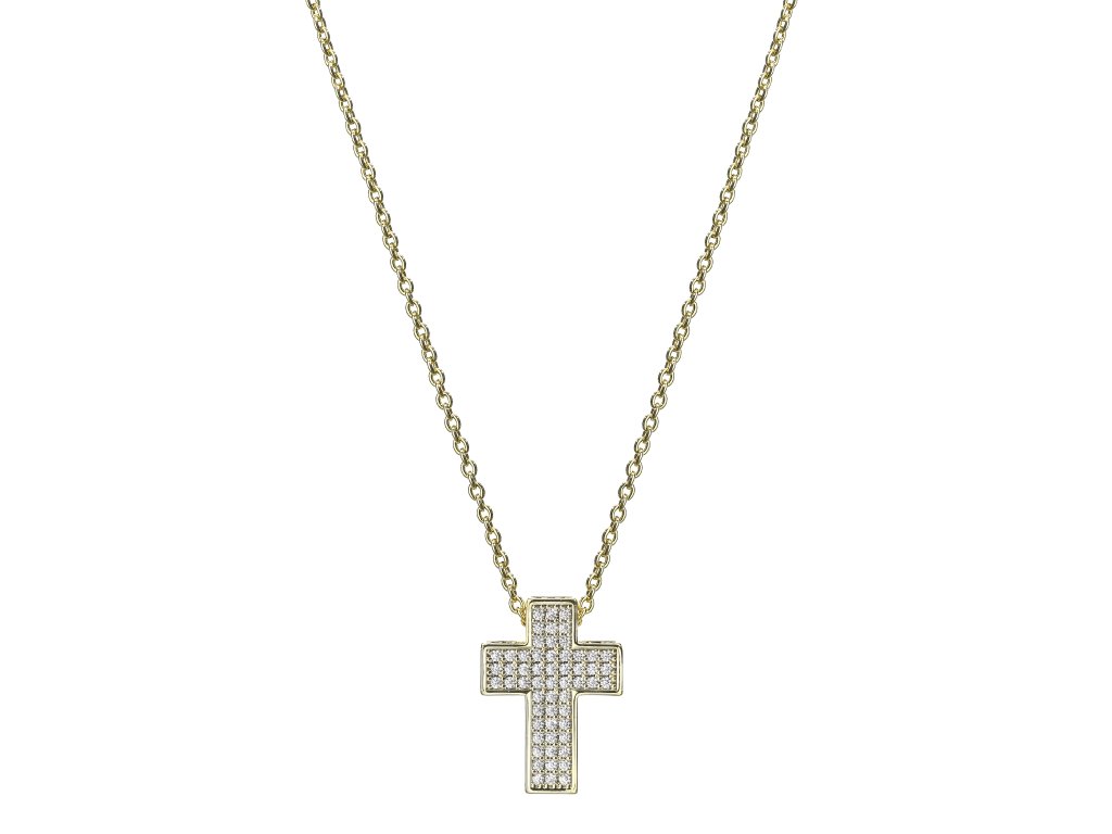 PRÍVESOK CHIARA FERRAGNI WOMEN J19AWC09 (42+8CM ). Materiál: MATERIÁL: MOSAZ. Farba: BIELA. Rozmery: . CROCI PEND.CROSS+WH CZ+YG PLATED 42+8CM