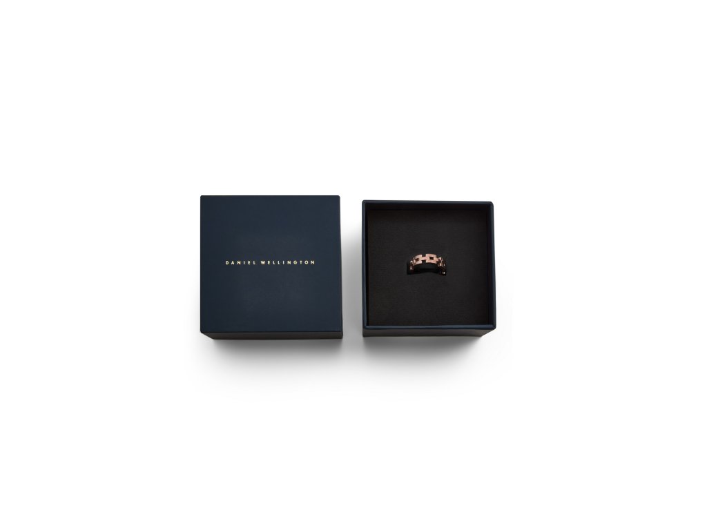 Prsteň navrhli dizajnéri spoločnosti Daniel Wellington, abyjeho dizajn zodpovedá estetike ikonickej kolekcie hodiniek Link, ale v elegantnej podobe šperku. Pomery sa zachovali, alemedzery prenikajú cez prsteň, aby zjemnili celkový vzhľadktoré šperku dodávajú vzdušný, jemný a atraktívny vzhľad.