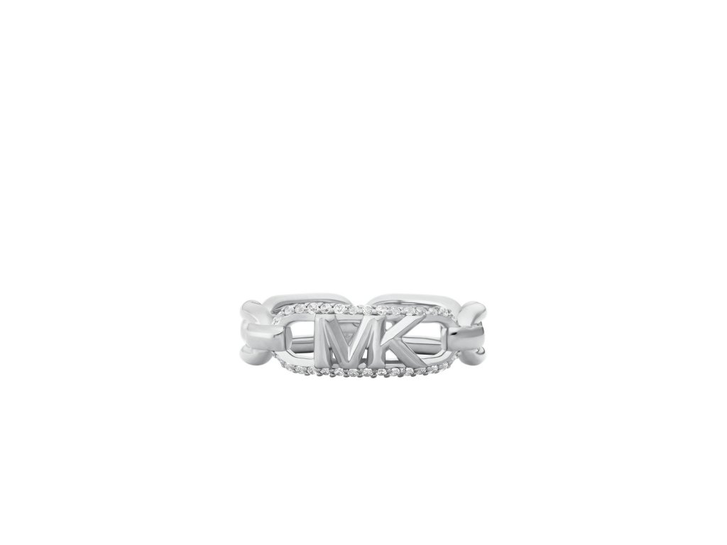 Na bočnej strane sa nachádzajemne vyryté logo Michael Korsktorá jemne pripomína značkový pôvod šperku. Prsteň je vyrobený zstriebro 925/1000. Vďaka svojmu spracovaniu je vhodný na nosenie samostatne alebo v kombinácii s inými doplnkami v striebornom odtieni. Hmotnosť šperku: 2,8 g.